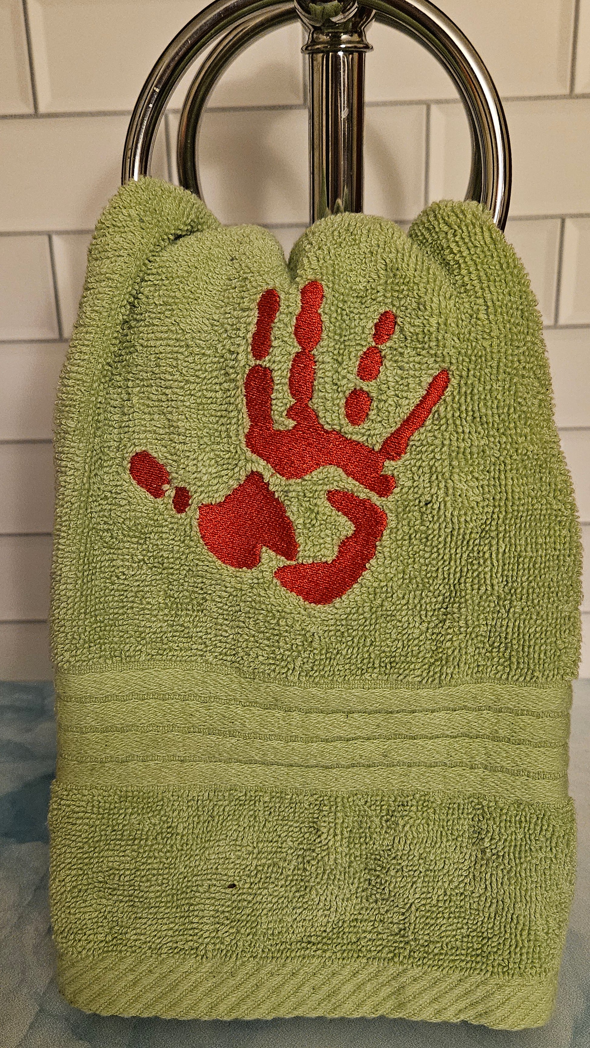 Hand Print Symbol Embroidered Hand Towel