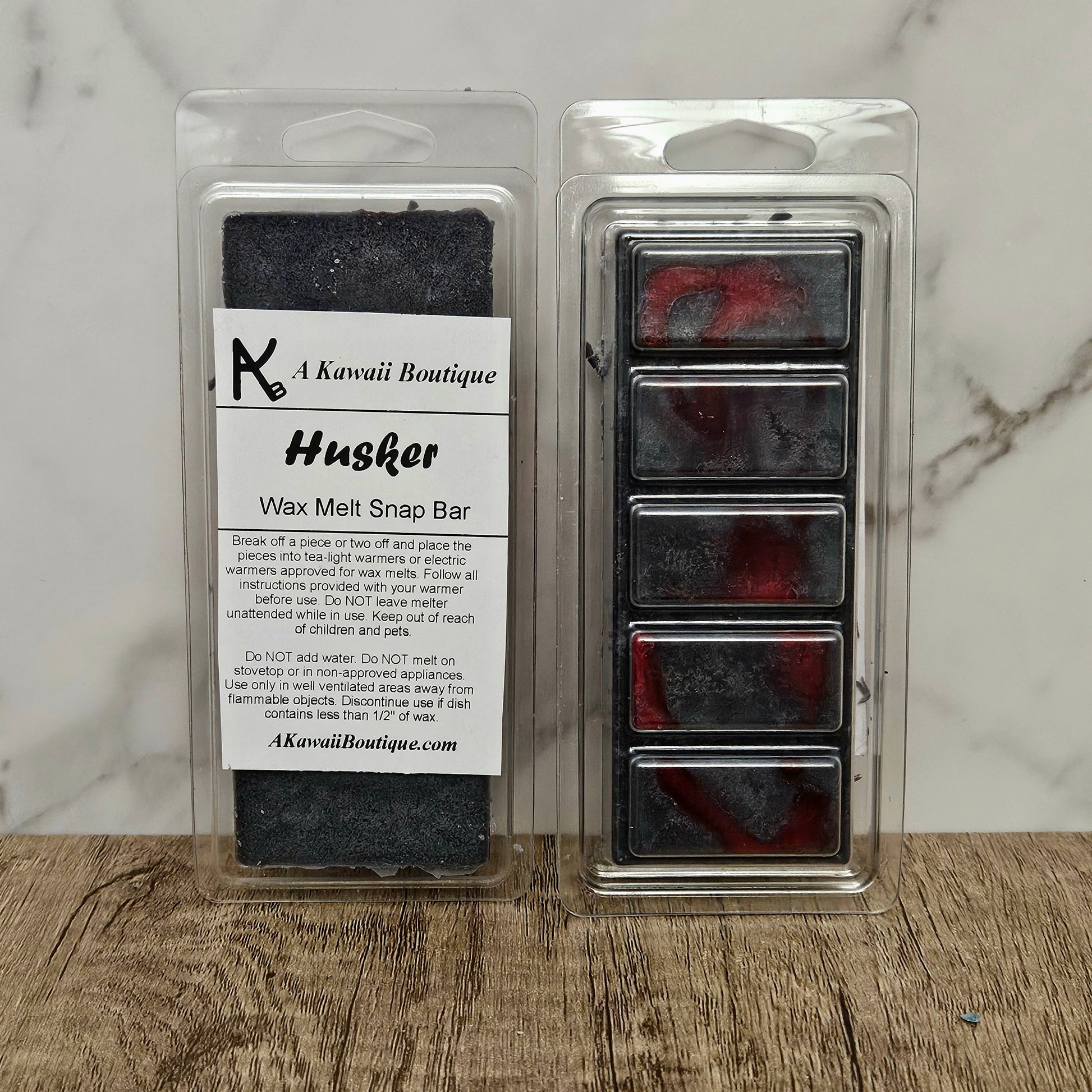 Each of these bars are in between 1.9oz to 2.3oz and is made from a blend of soywax and paraffin wax.