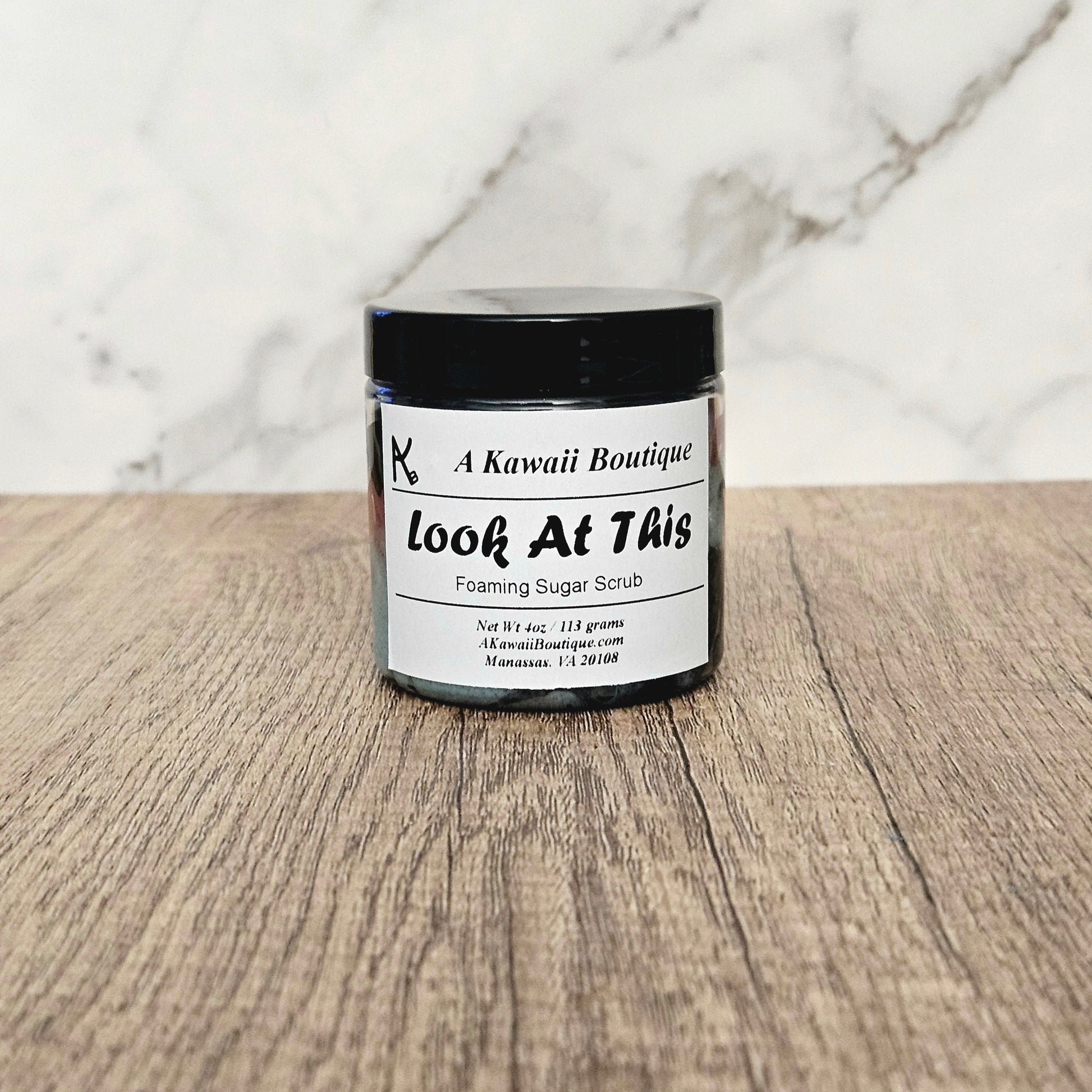 Each foaming sugar scrub is labeled at 4 ounces (but sometimes weighs up to 4.5) and comes shrink wrapped in the jar.