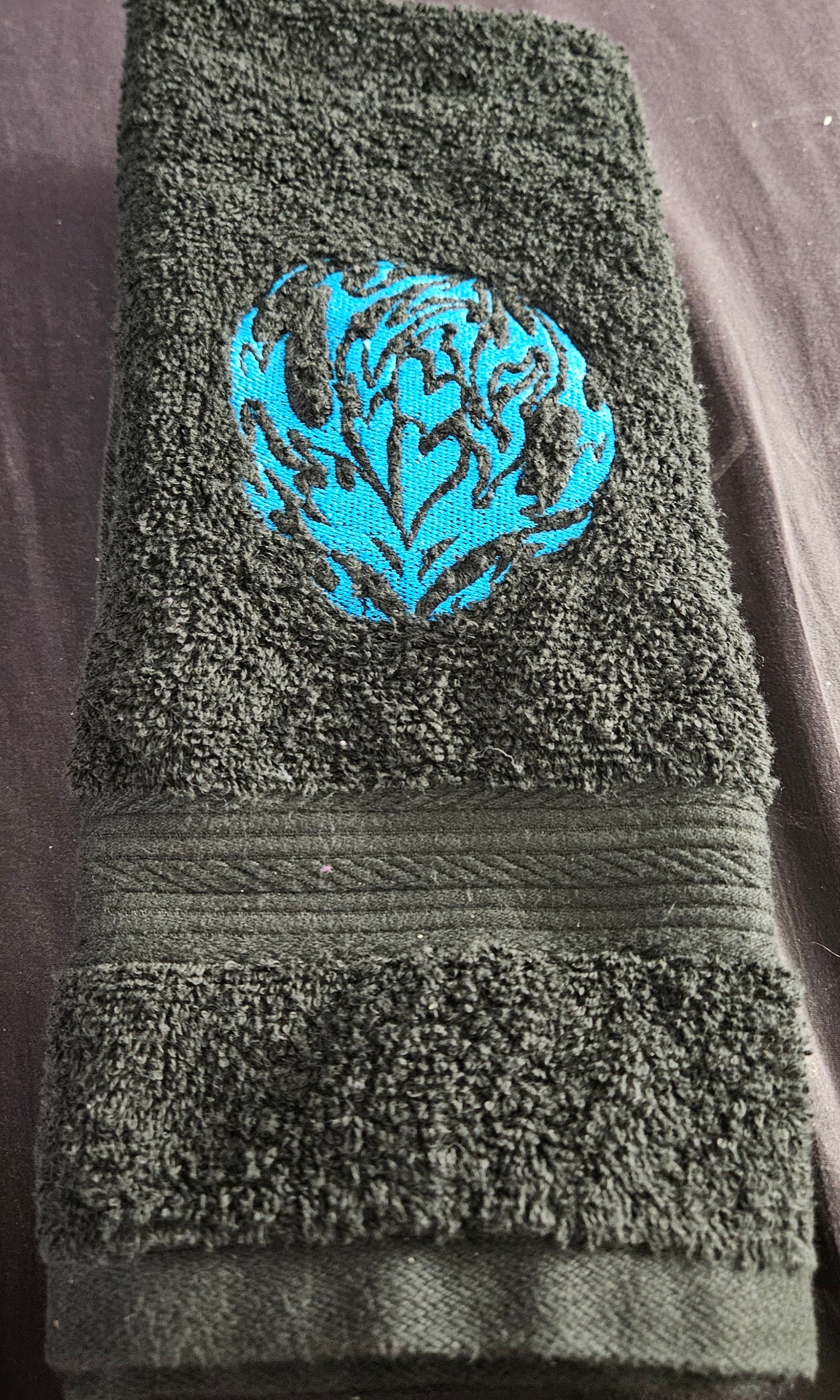 The towel measures approximately 16" x 26", and is machine washable. The logo has been embroidered directly on the towel. Great to geek up your bathroom!