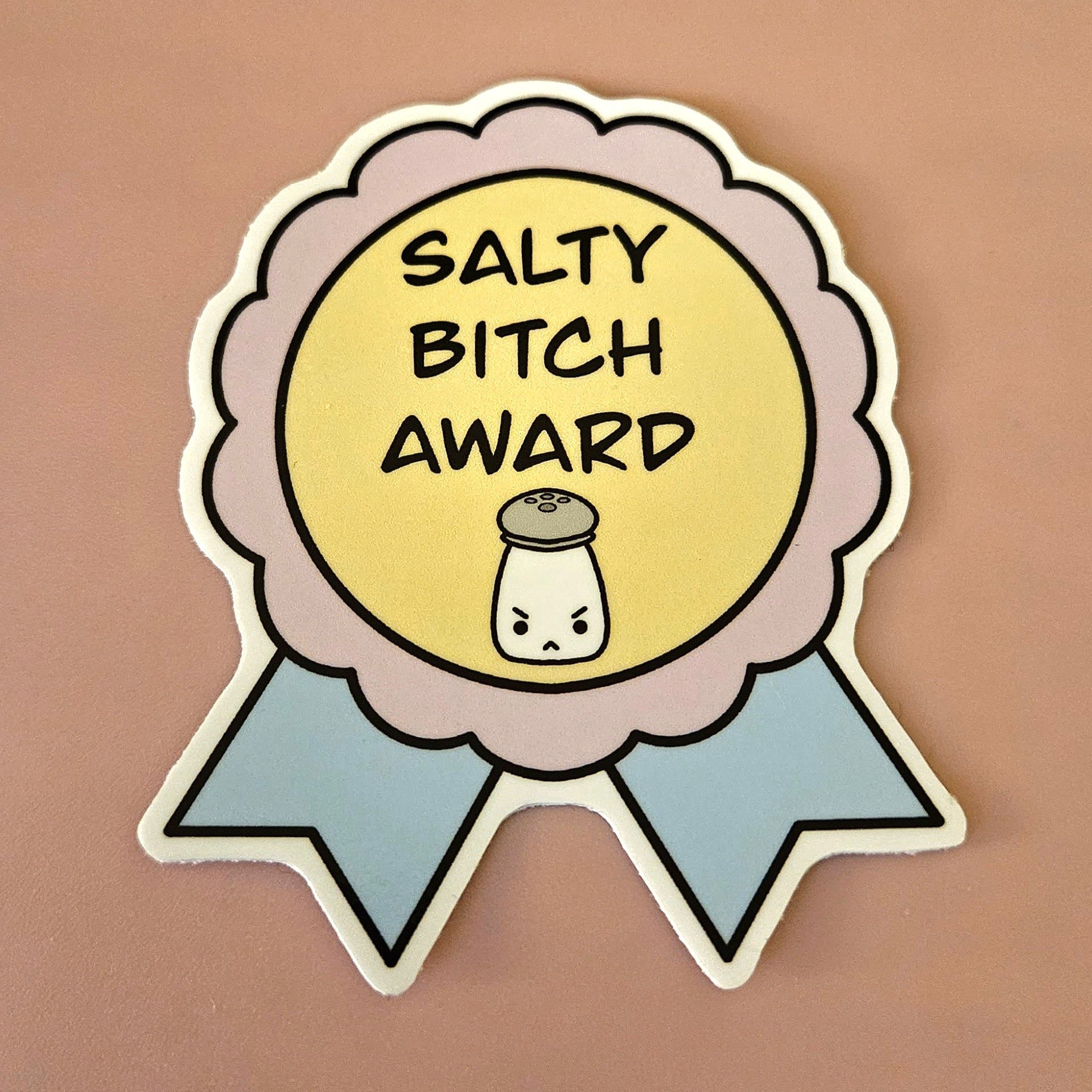 Salty Bitch Award! This vinyl sticker is heavy duty waterproof! It is perfect for water bottles, notebooks, laptop, cases, etc!