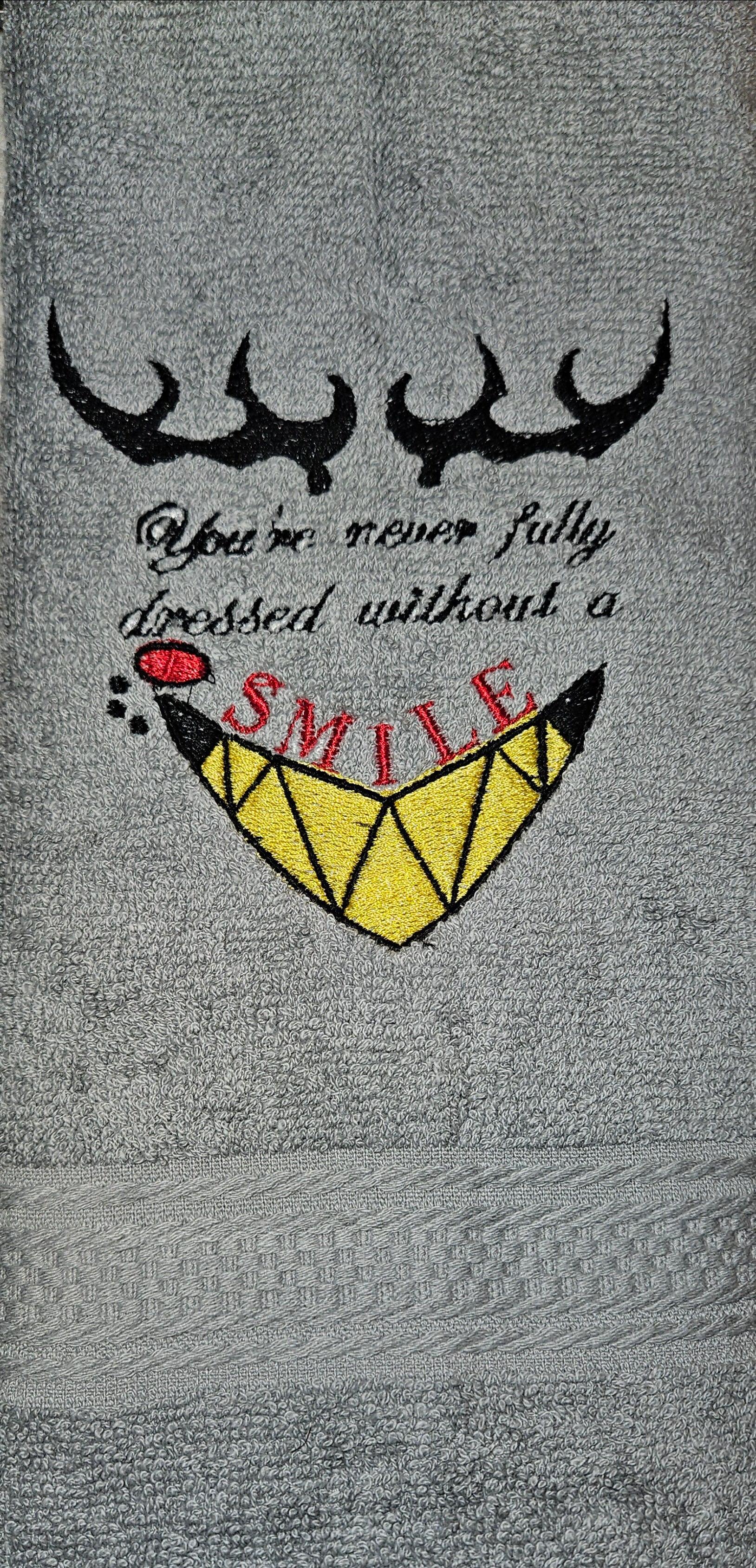You're Never Fully Dressed Without A Smile Embroidered Hand Towel
